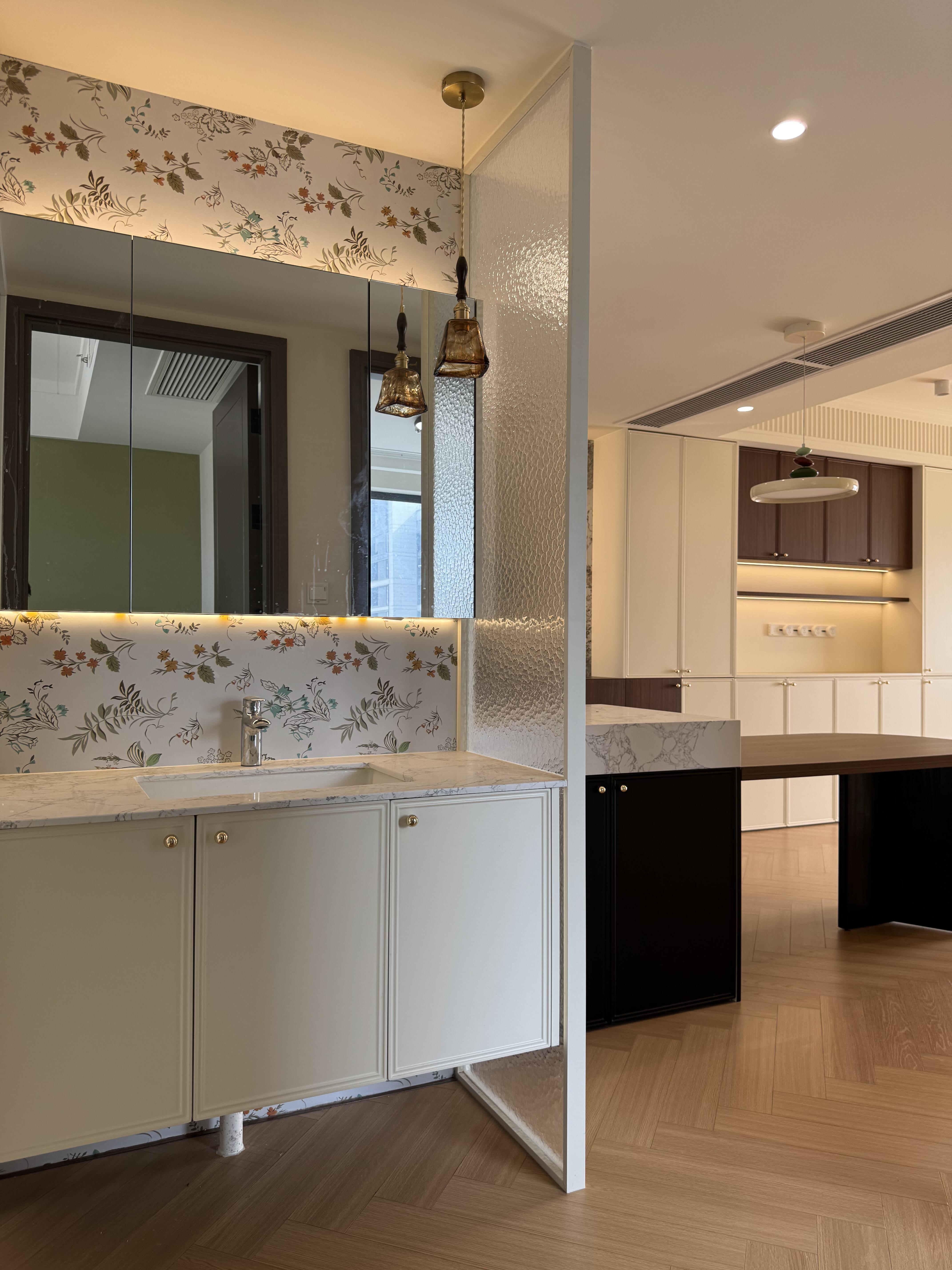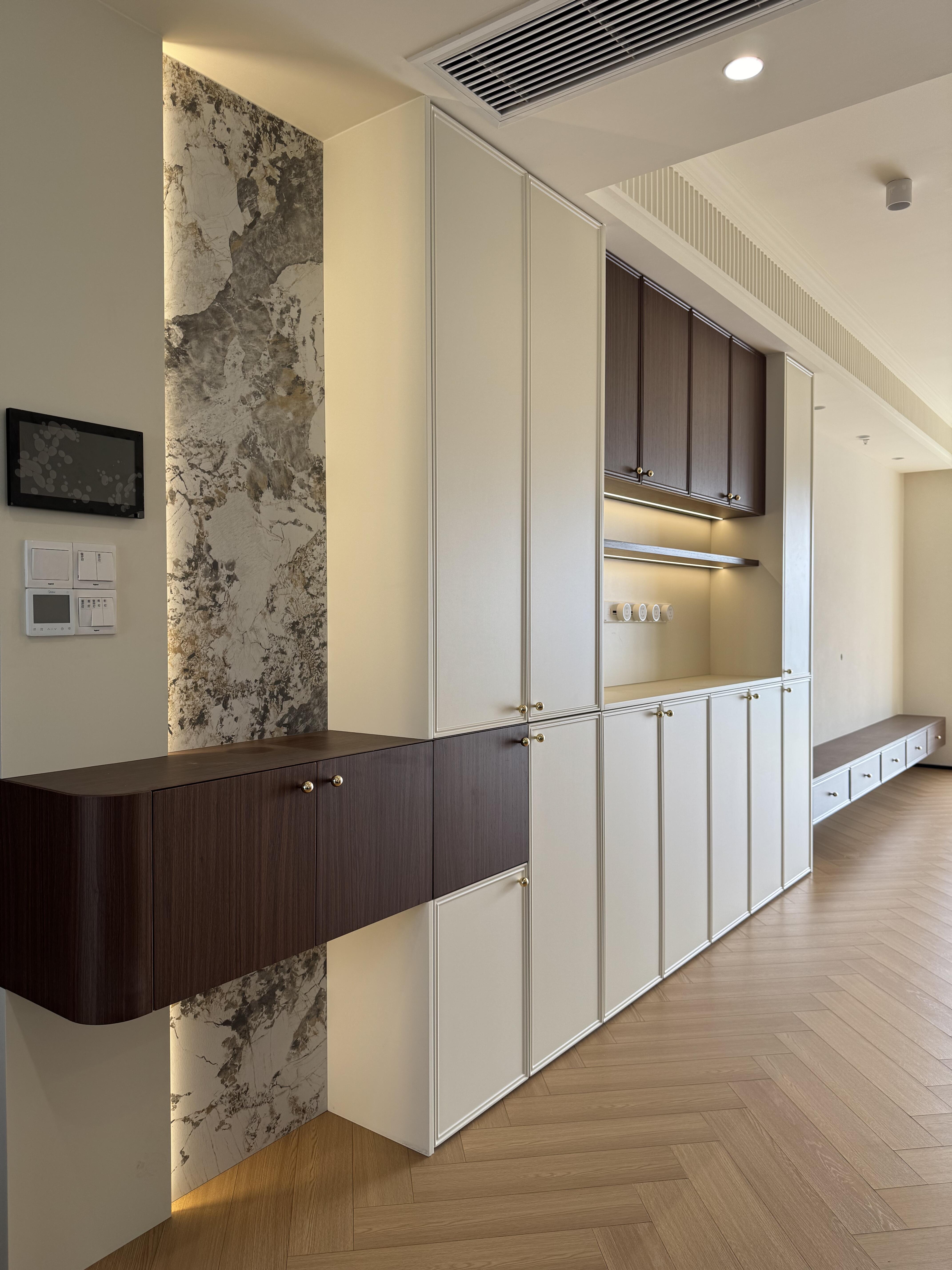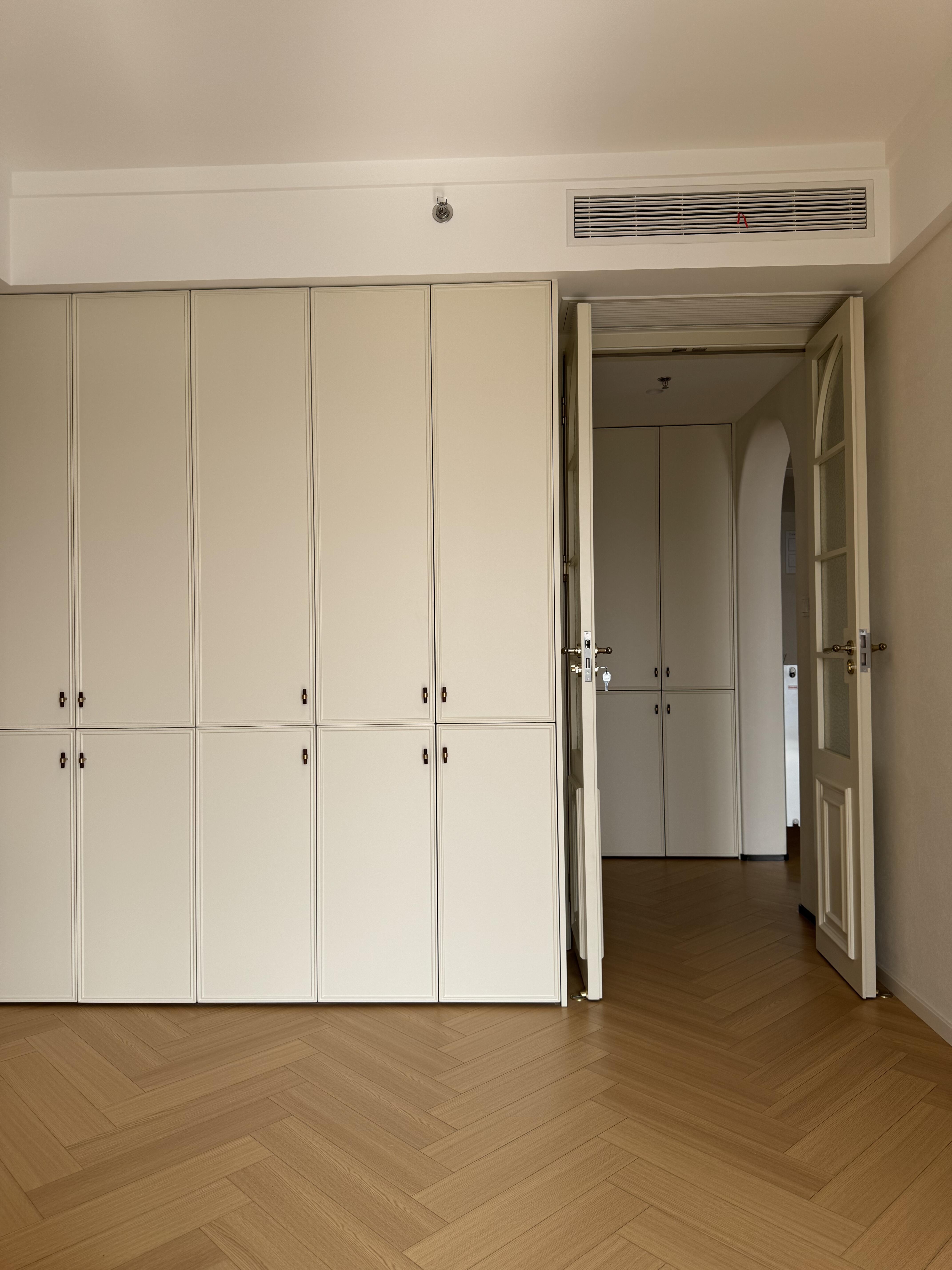 奶油色模壓門,金屬拉手點綴都是喜歡的