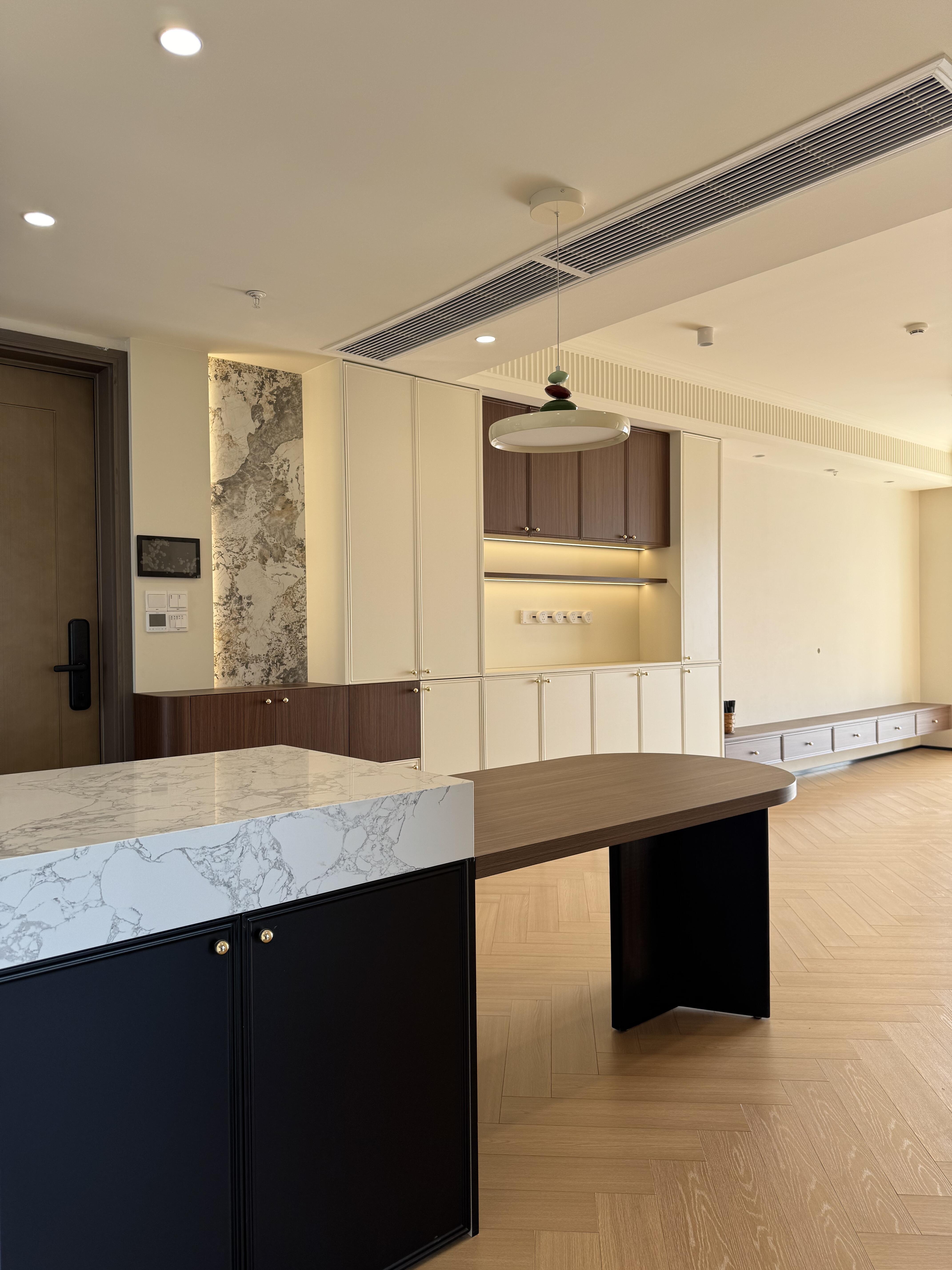 微水泥潘多拉背板,島臺圓弧桌面,