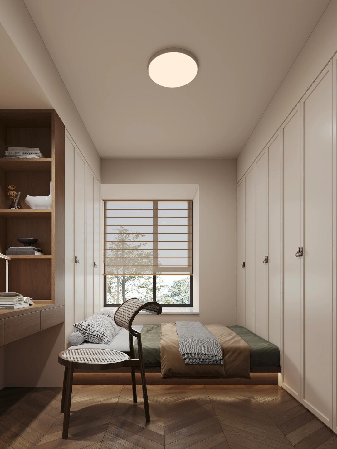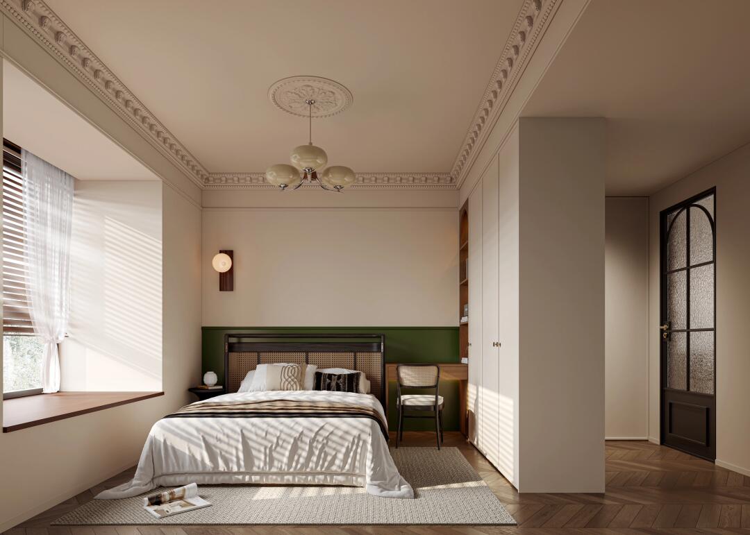 不需要太復(fù)雜的造型,簡(jiǎn)單的石膏雕花線條作為頂面造型,既不影響層高,也讓家里更為溫馨小浪漫。