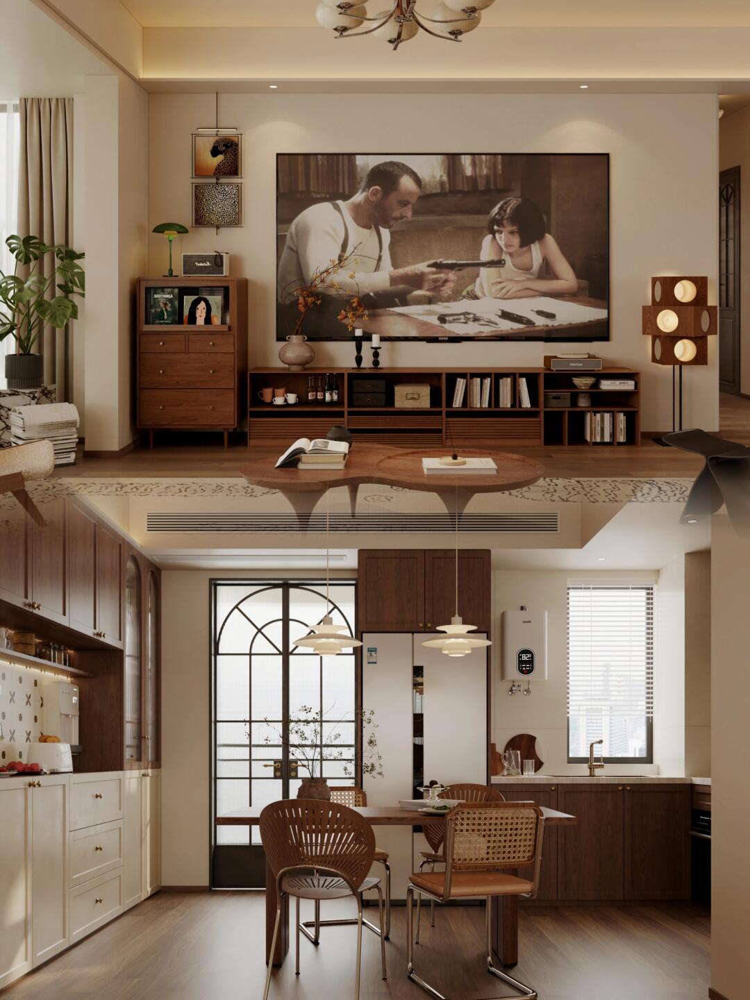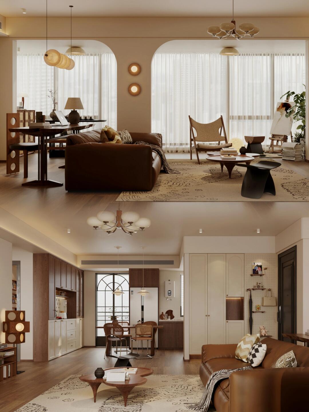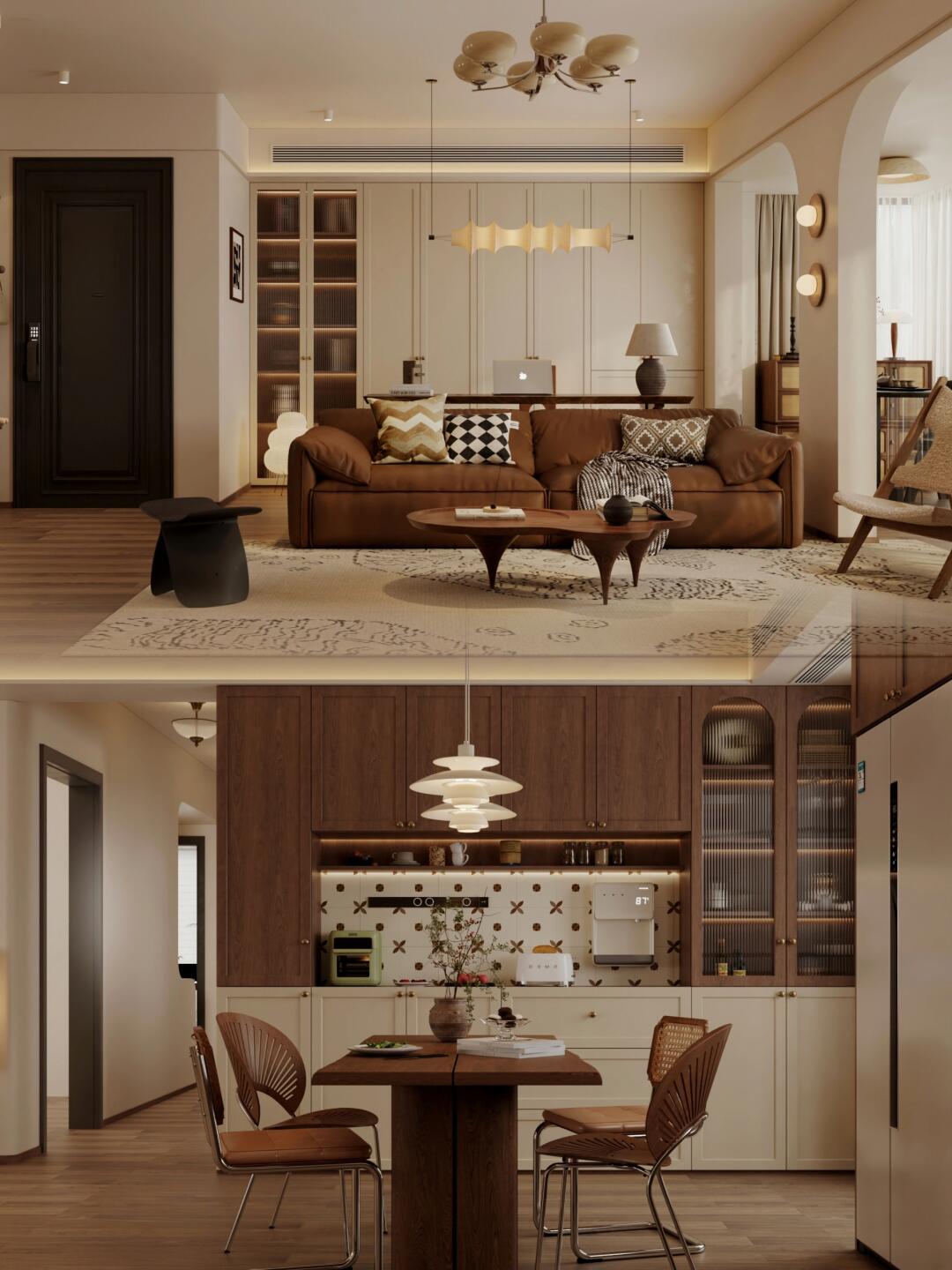 家主熱衷復(fù)古風(fēng),設(shè)計(jì)上整個(gè)家以棕調(diào)搭配,