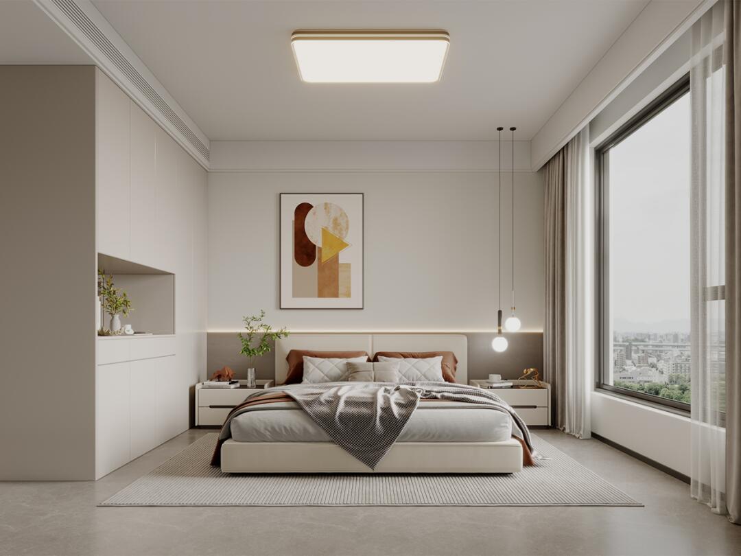 床邊的吊燈,夜晚讀書或小憩,都是極好的享受。