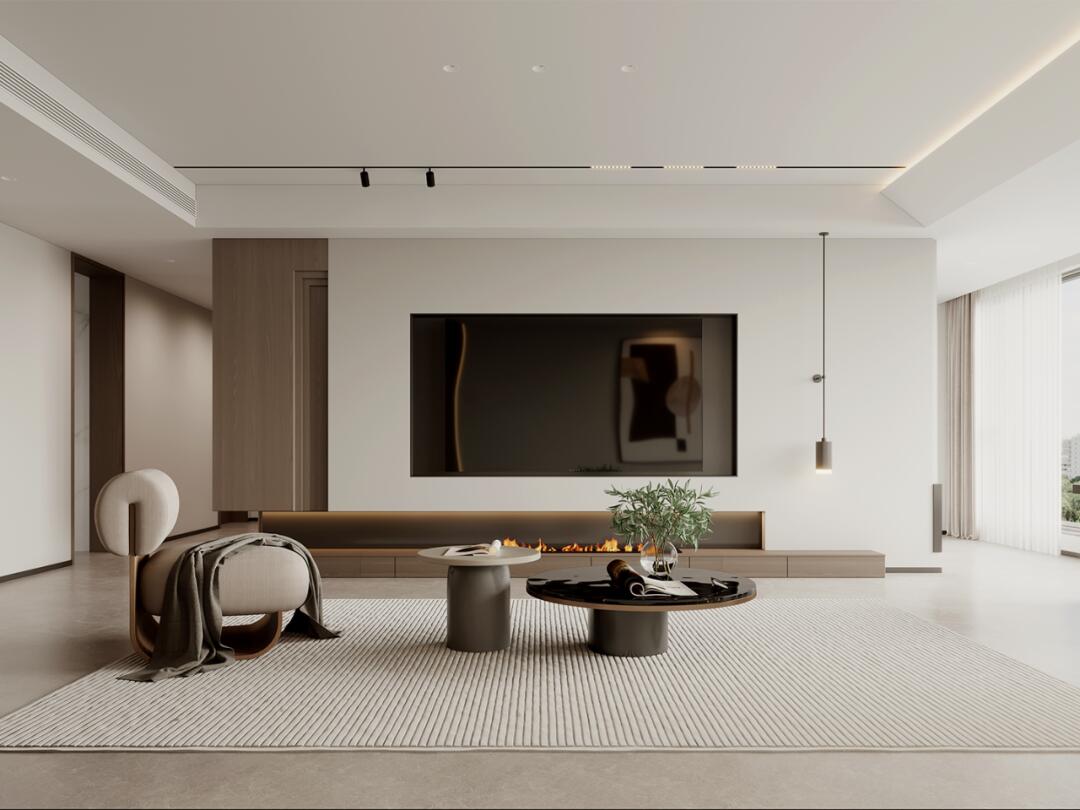 客廳采用了現代極簡的設計風格,一踏入這方天地,滿眼的白色調瞬間讓人心靜如水。