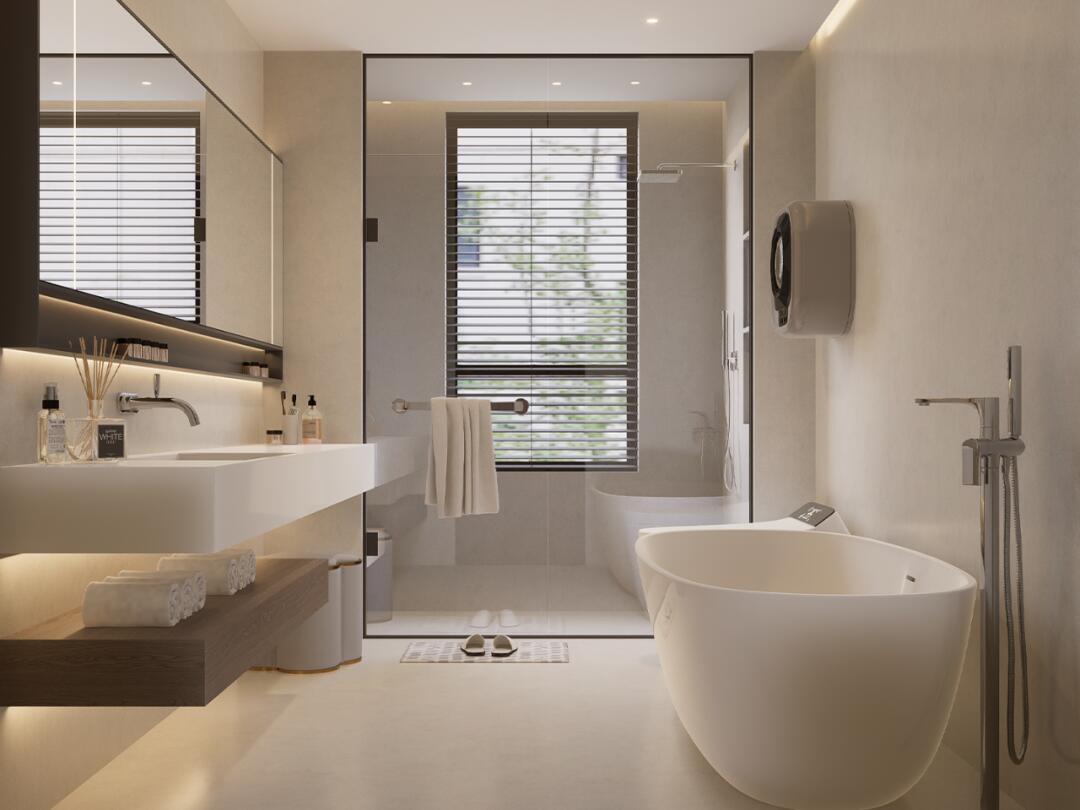 巧妙利用鏡柜增加收納,干濕分離設計讓使用更加便捷。