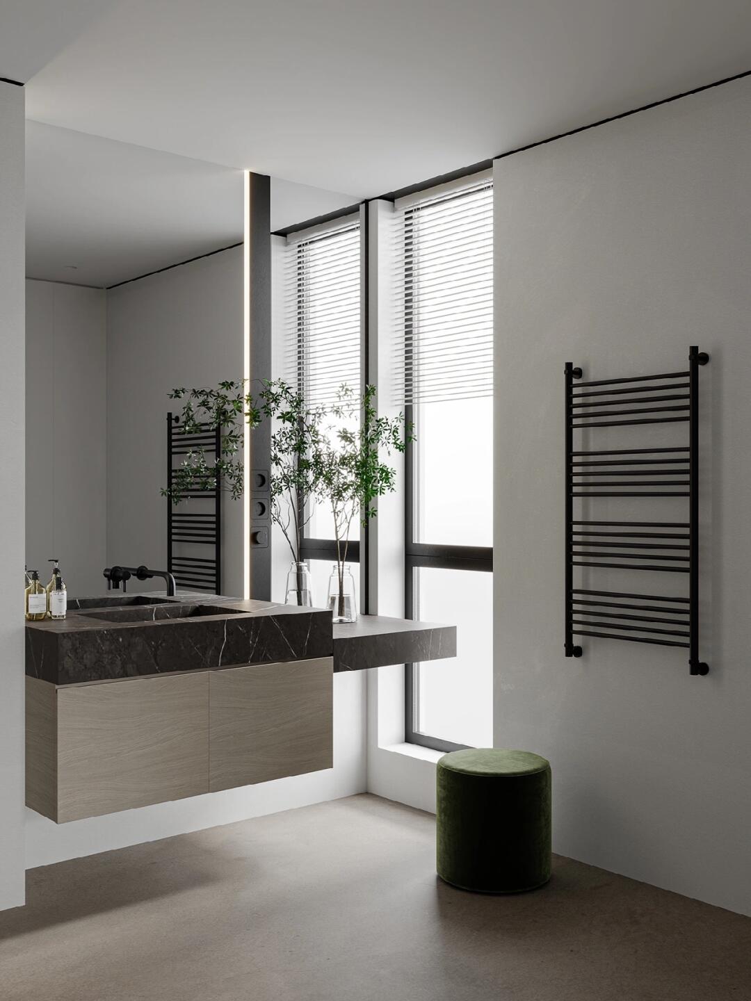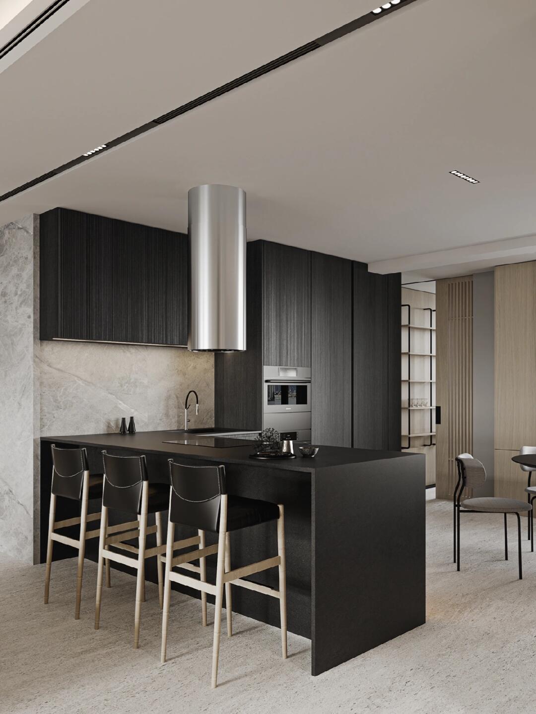 以黑白灰為主色調,點綴淡雅木色,整個空間既明亮又寬敞。