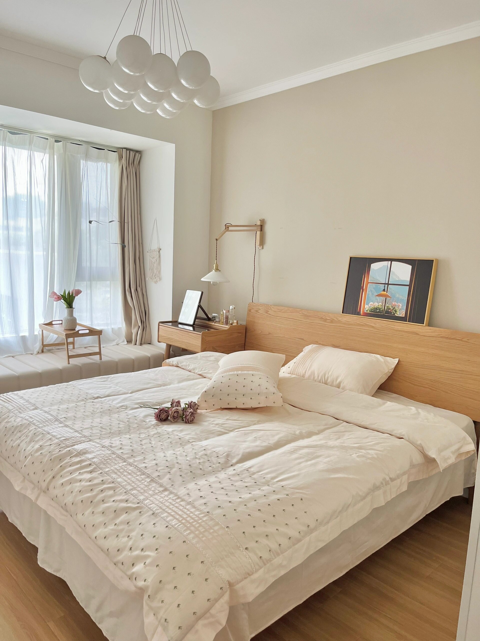 原木色系的床,放在臥室中,在休息放松的地方,感覺總是更加貼近自然,拉近了我們和自然感的距離。置身其中,能真切的感受到生活最初的美好。