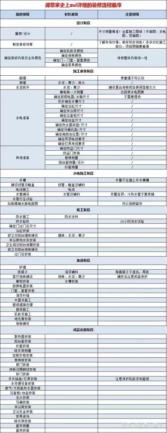整理了史上zui詳細的裝修流程順序參考!沒有長篇大段的文字,就是一張圖表!