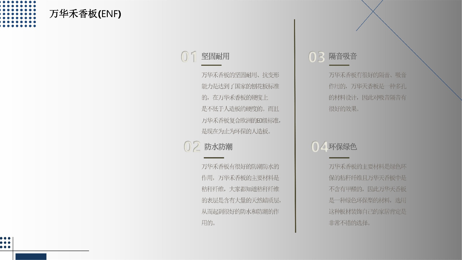 產(chǎn)品簡介:清木家在天津全屋定制行業(yè)不忘初心,熟悉了解消費(fèi)者的需求與痛點(diǎn)。總結(jié)出了該產(chǎn)品的幾項(xiàng)優(yōu)點(diǎn),環(huán)保:萬華禾香板是由竹材經(jīng)過多道工序加工而成,不含任何有害物質(zhì),是一種環(huán)保板材。強(qiáng)度高:萬華禾香板的強(qiáng)度比較高,不易變形,可以保證家具的使用壽命。耐磨損:萬華禾香板的表面比較堅(jiān)硬,所以它具有較好的耐磨損性能。美觀:萬華禾香板的顏色和紋理都比較自然,看起來很美觀。環(huán)保等級(jí):ENF級(jí)...
